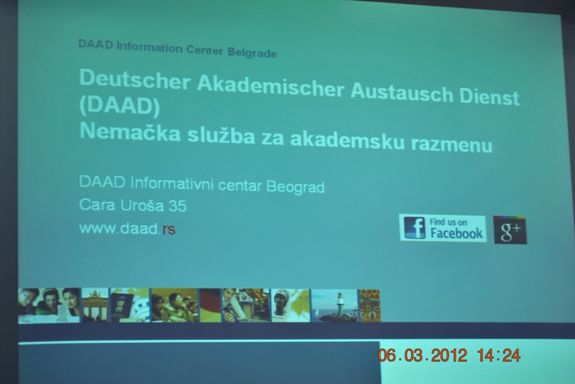 Visit of dr Frens Stoeckel, Director of DAAD Information Centre in Serbia, 6th March 2012.